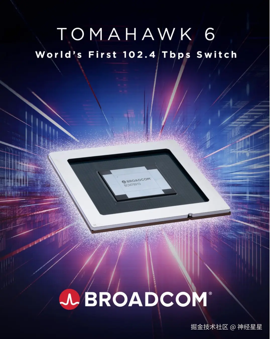 Tomahawk 6,图源 Broadcom X 账号