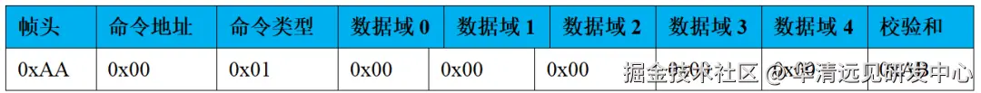 帧校验机制:校验和=(帧头+命令地址+命令类型+数据域)&0xFF,确保数据传输正确性
