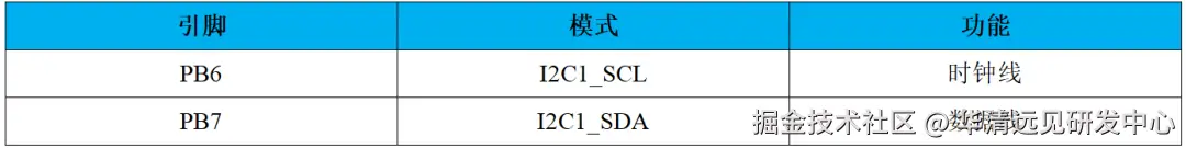 上图可以看出连接传感器的I2C引脚为PB7和PB6,引脚定义如下表: