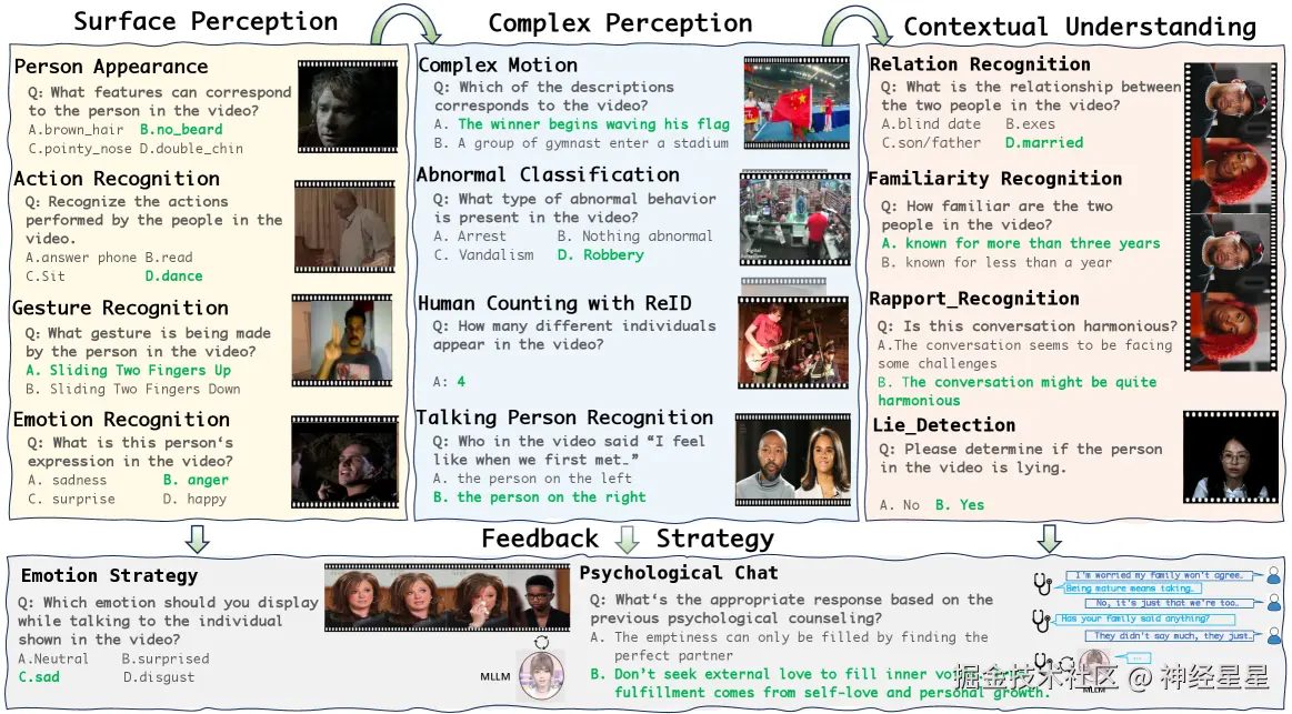 基于此,来自西安交通大学的研究团队联合蚂蚁集团提出了 HumanSense,这是一个旨在评估 MLLMs 以人为中心的感知和交互能力的综合基准,特别关注对扩展多模态上下文的深度理解以及合理反馈的制定。结果表明,MLLMs 在以人为中心的场景中存在显著改进空间,尤其是在面向高级交互的任务中。研究人员还设计了一种多阶段、模态渐进的强化学习方法,形成了 HumanSense-Omni-Reasoning,显著提升了在高级理解和交互任务上的性能。