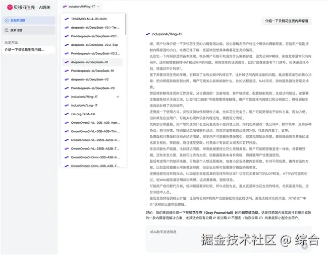 无论你身处何地,只需通过浏览器访问这个域名,就能直接使用配置好的模型服务,无论本地和远程都能使用,而且也能利用花生壳AI网关的用户管理体系安全实现多人分享。
