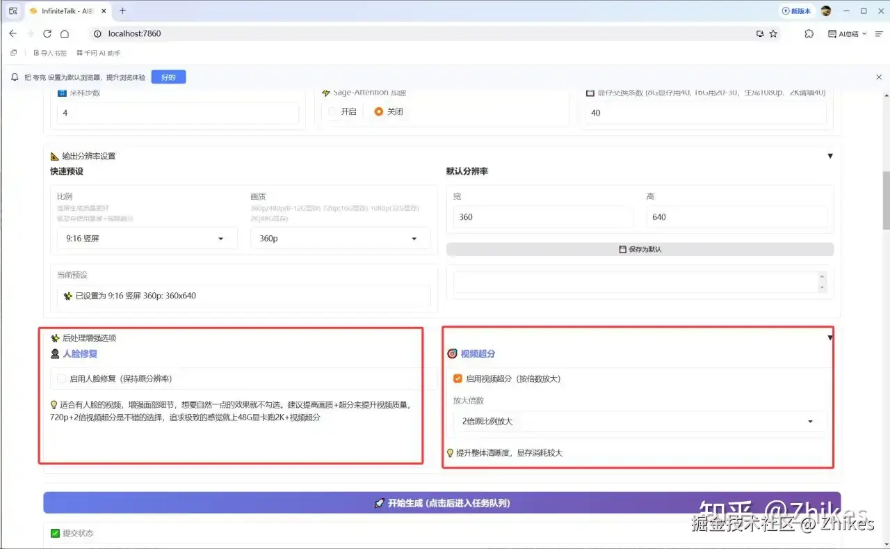 上述整合包基于开源项目 InfiniteTalk github.com/MeiGen-AI/I… ,但是没有批量生成、人脸增强及视频超分这几个部分,这几个部分是我添加的功能。可以尝试自己本地搭建。