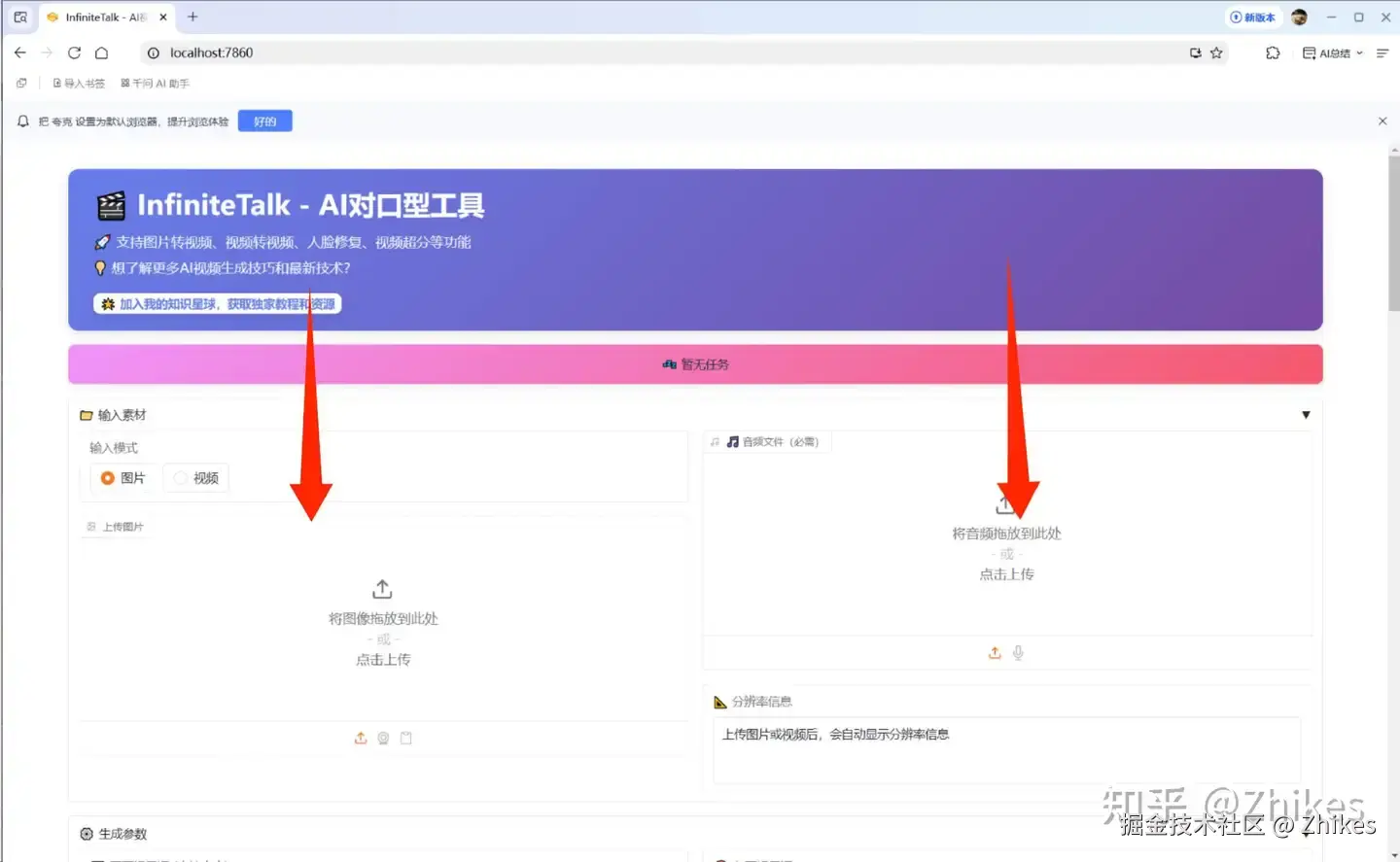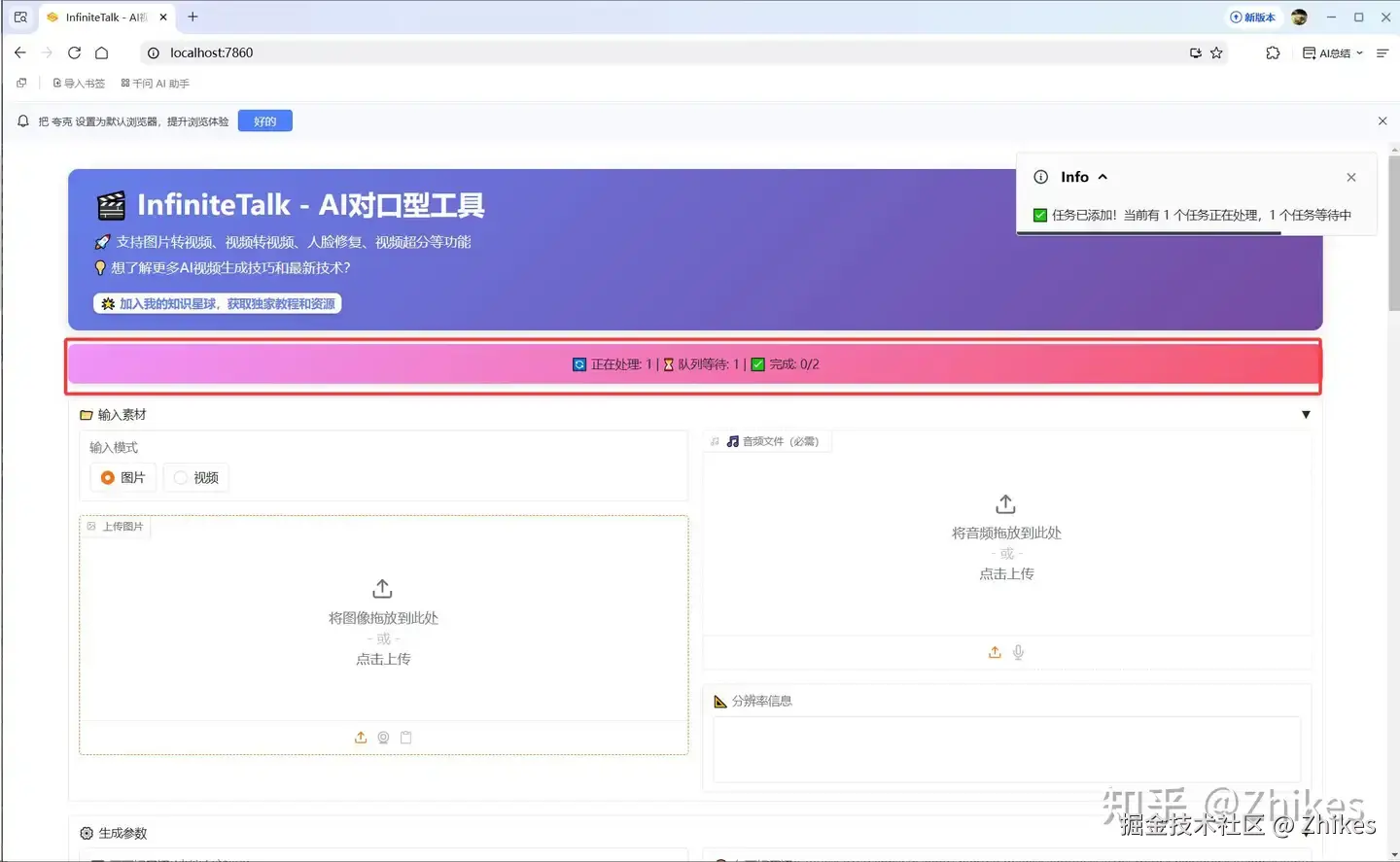 - 操作步骤:上传带麦克风的照片 → 上传歌曲音频 → 选择画质 → 开始生成。若想画面更真实,可只勾选“视频超分”,不勾选人脸修复。