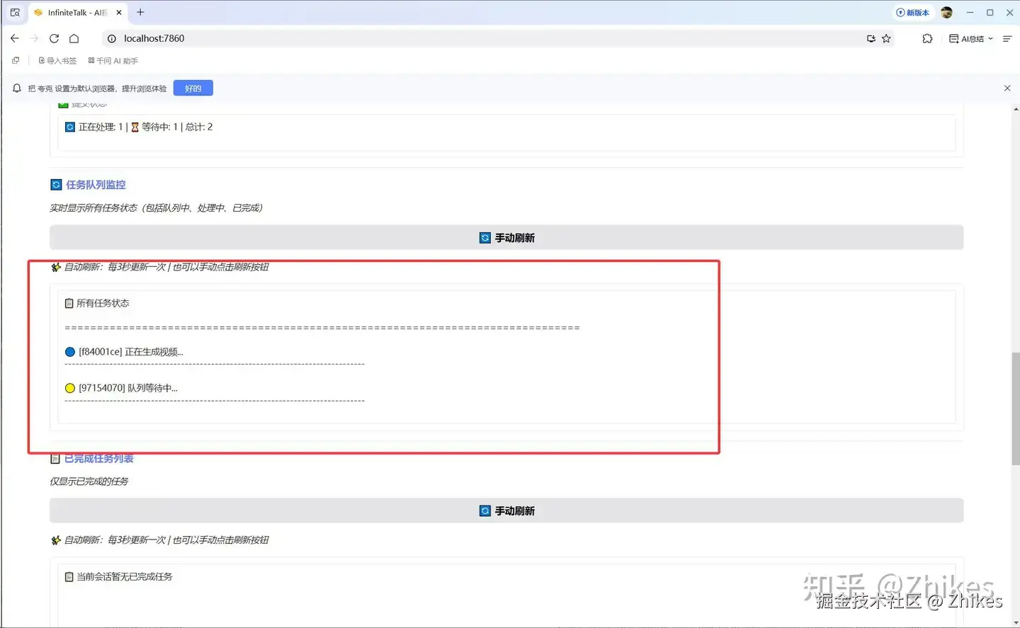 下面也有任务队列监控,可以看到当前任务进行到哪一步,以及所有任务的执行情况