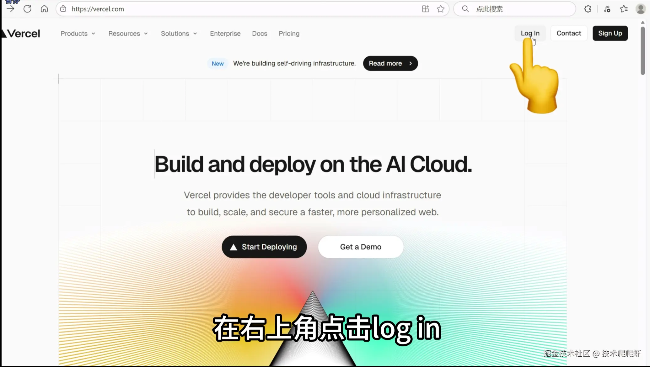 接下来,我们来到第一个免费的部署平台,也就是vercel。 vercel.com ,在右上角点击“log in”,这里一定要选择使用GitHub登录。