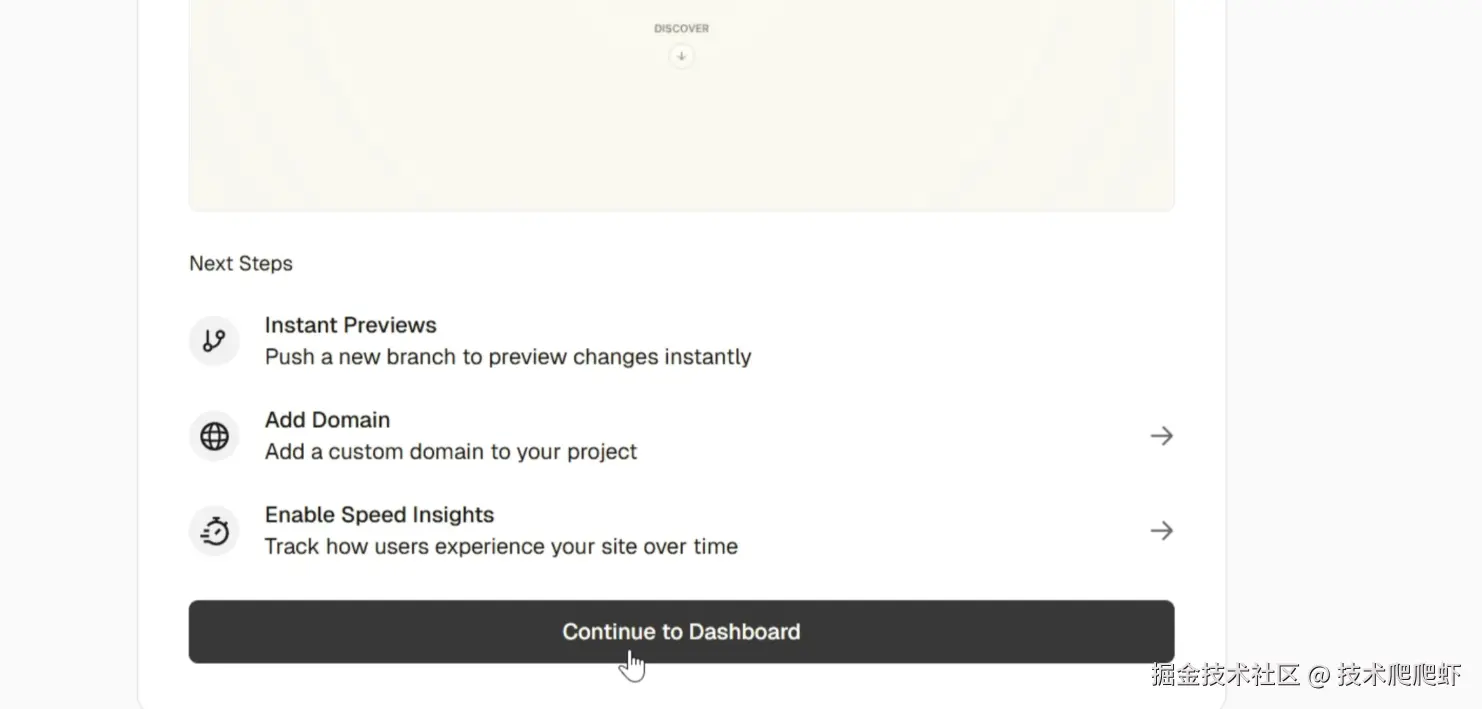 这里要注意一下,Vercel给的这个域名在国内是没法直连的。我们可以点击项目,这里“return to dashboard”,