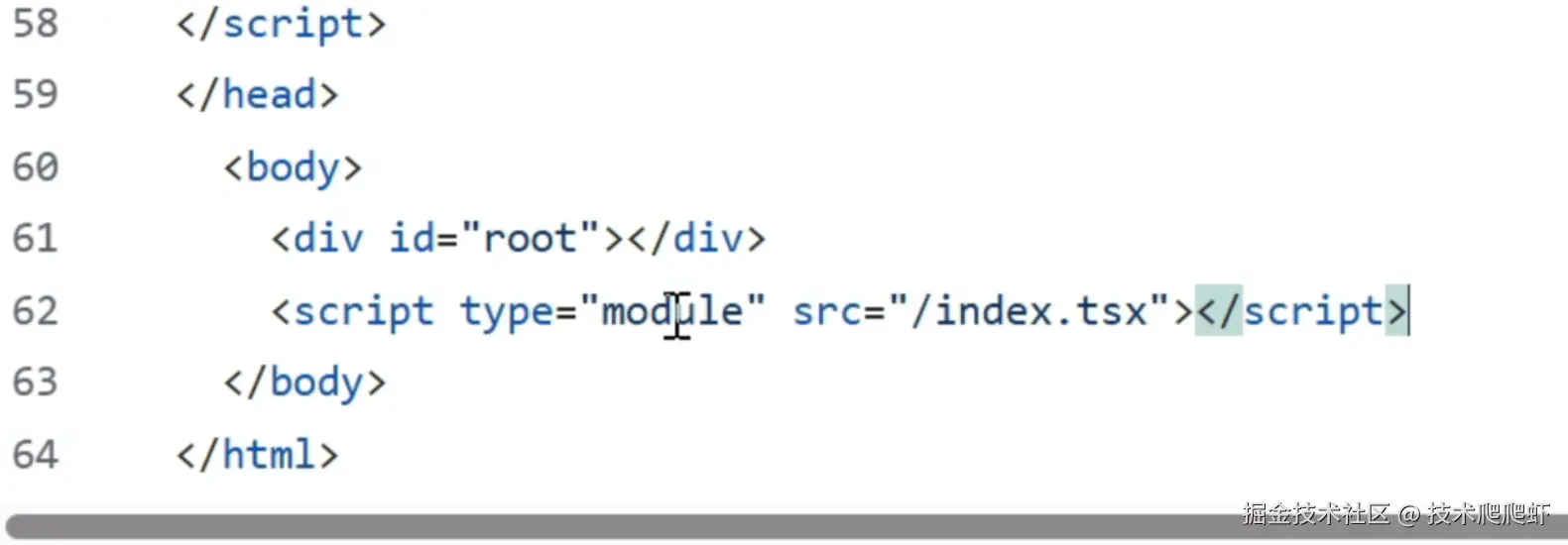 然后找到最下面,这里我们要修改一行代码。这一步是重点,我们需要添加这么一句话,把react的入口文件引用进来。
