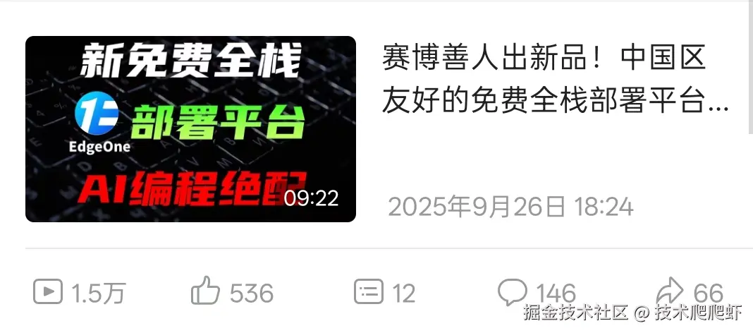 下一个同样免费的部署平台是腾讯的 EdgeOne Pages。我之前有一个完整视频介绍使用EdgeOne Pages部署项目,它的步骤跟Vercel和Netlify是一模一样的,这里我就不赘述了。