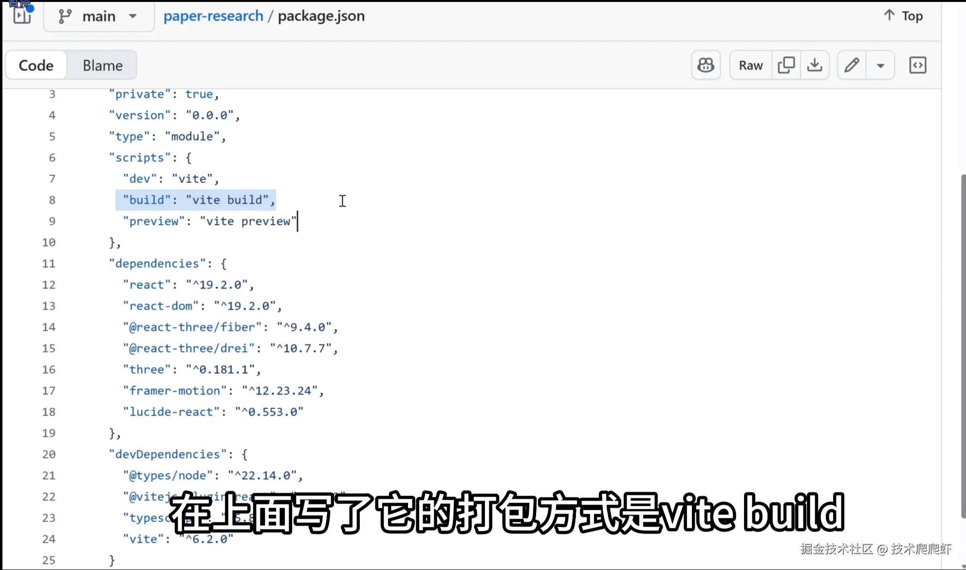 有了完整代码以后,我们来分析一下这个项目,主要看这里的package.json。在这里可以看到,项目的前端框架是react。react是目前非常流行的前端框架,有组件化、高性能、代码简洁等优点,而且react的生态极为丰富,几乎所有的功能都有现成的轮子可以拿来用。在上面写了它的打包方式是vite build,那这个项目就非常简单了。这个项目是以react框架开发的,使用vite作为编译器的,一个纯前端项目。
