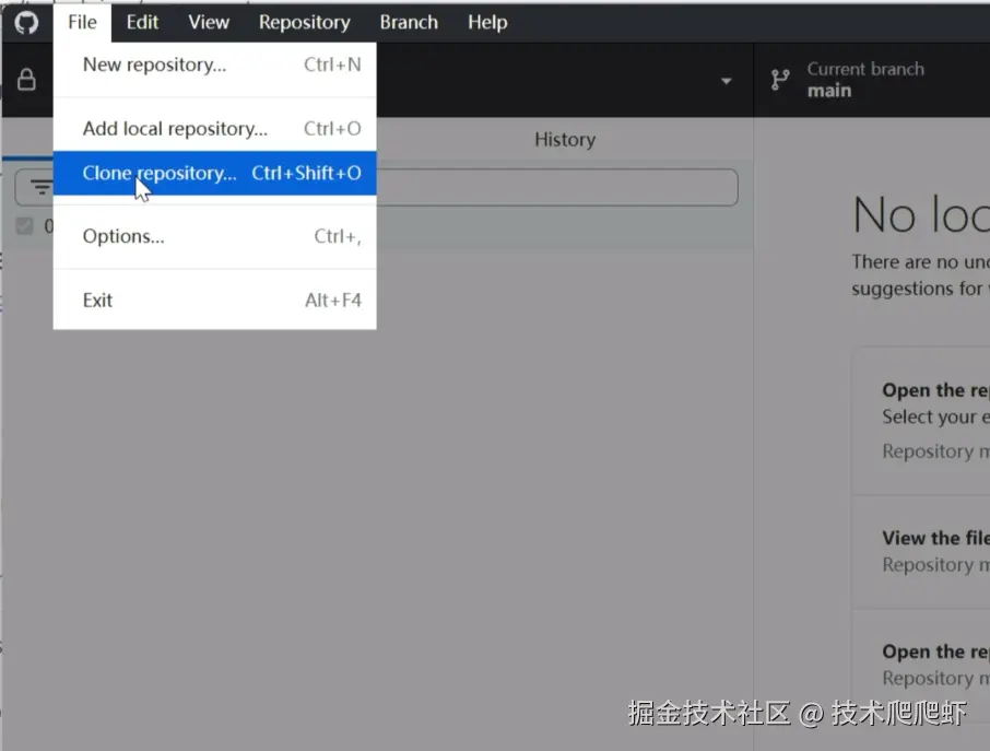 接下来,我们就用AI编程把这个项目改造一下。我们还是点击右上角的按钮,把项目保存到GitHub上面。接下来,我们要把这个项目克隆到本地来改造一下。如果对Git的命令行不熟悉的朋友们,这里可以使用GitHub的桌面客户端工具。我们打开GitHub Desktop这个软件,左上角File->克隆仓库,然后通过项目的名字搜索到,在下面选择一个目录,点击克隆。