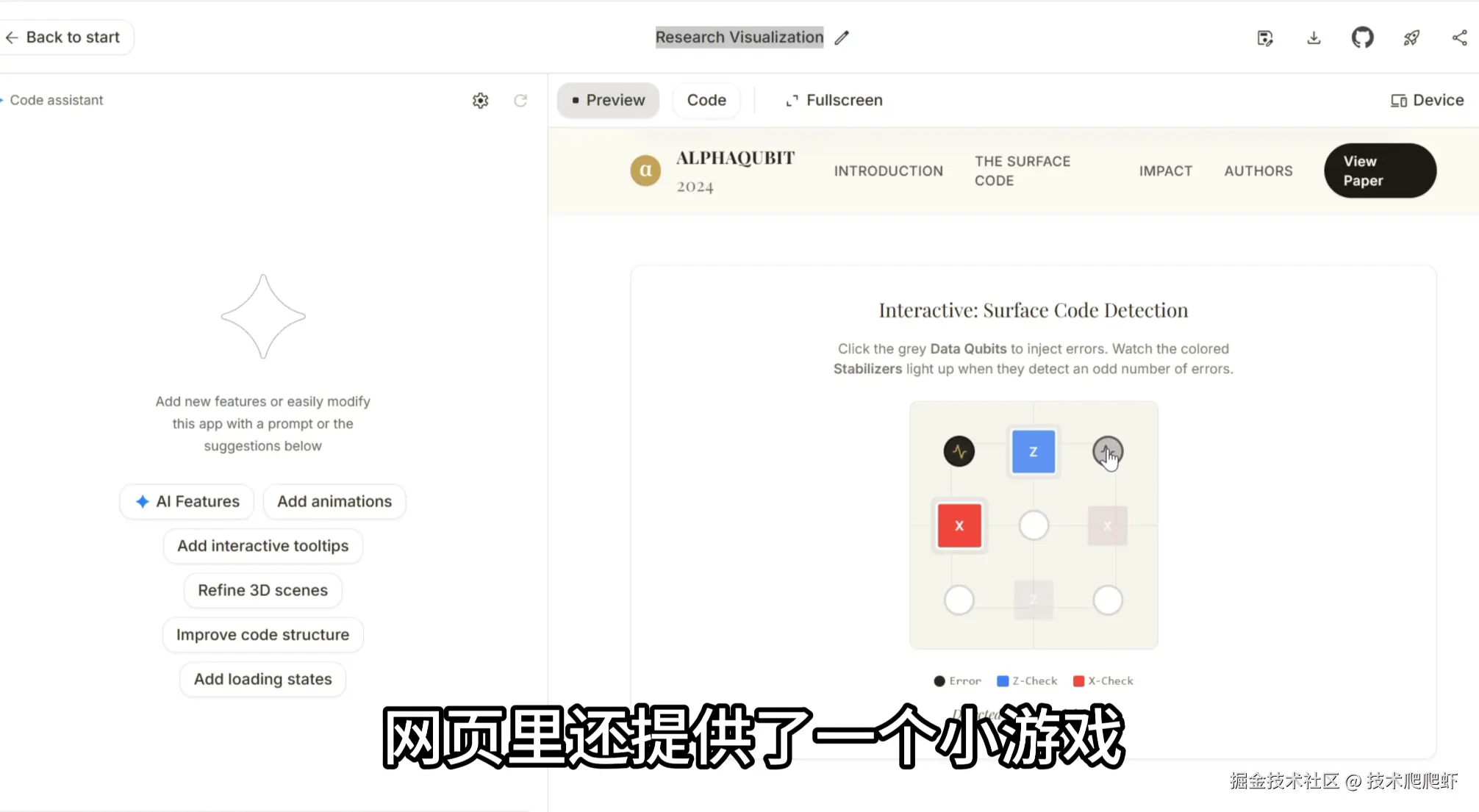 Gemini 3把一个真实的量子计算相关的论文,转换成了一个精美的网页。网页里还提供了一个小游戏,用来可视化的展示这篇论文的核心理论。