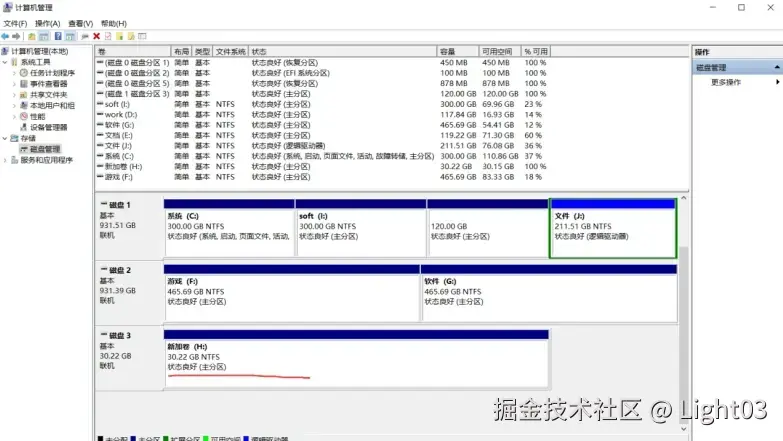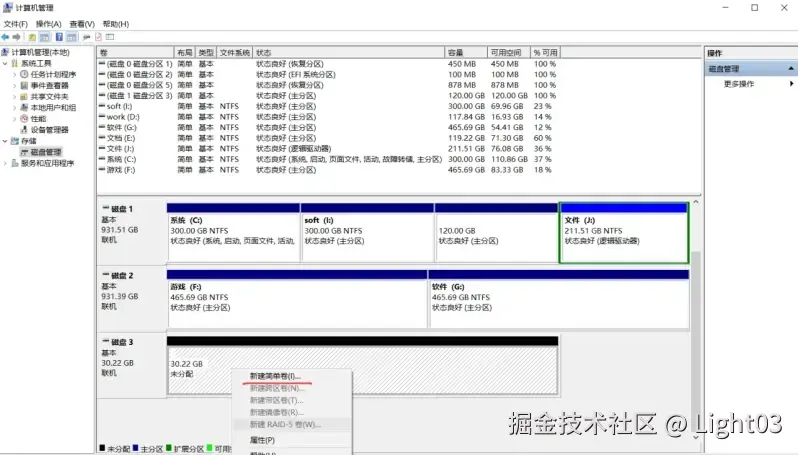 打开的窗口选“磁盘管理”