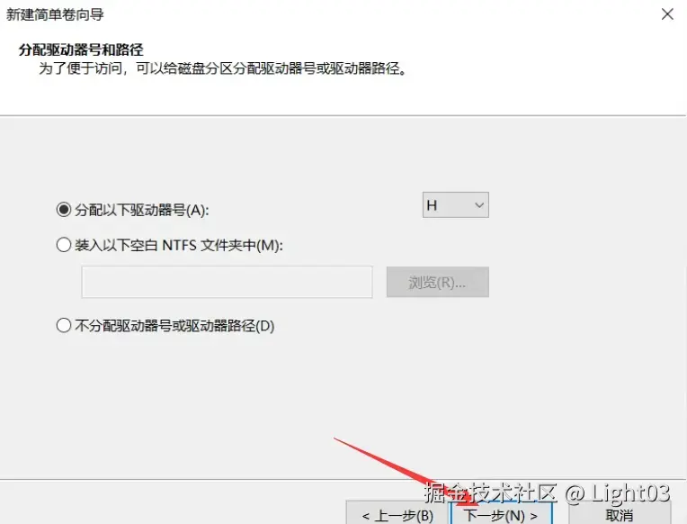分配盘符,使用系统默认的按“下一步”就可以了