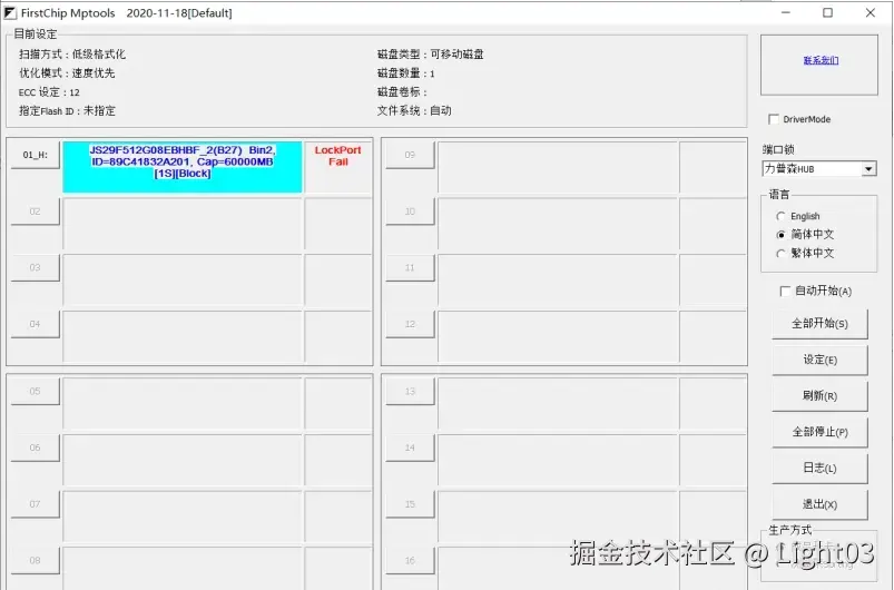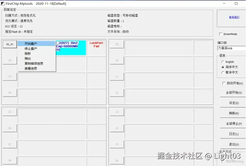 2、打开FirstChip量产软件,选成品开卡