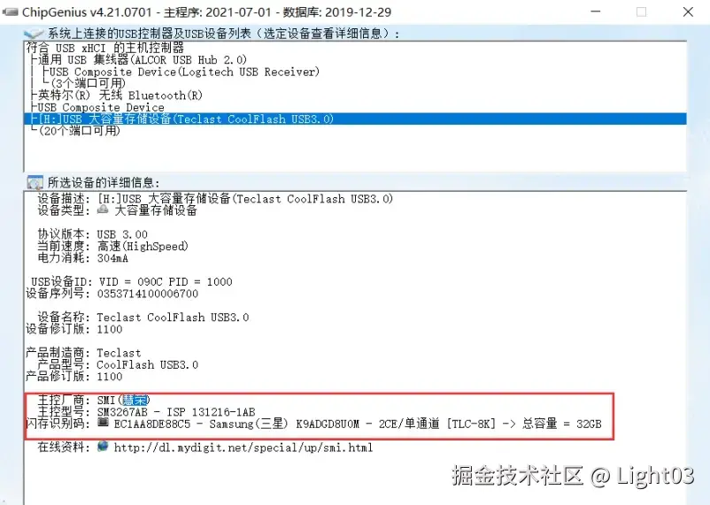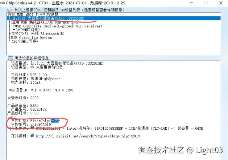 三、如果无法检测到主控,也就是使用芯片精灵检测不到主控型号,这时候可以参考试下以下两种方案