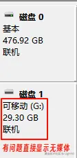 如图,接入储存设备后提示请将磁盘插入