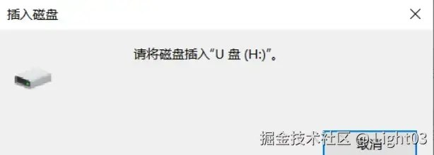 - 插入 U盘后显示 U 标识没有扫到盘符,也无法弹出盘,相当于没有插入 U盘