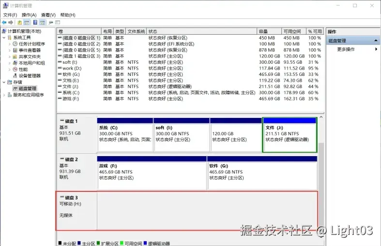 - 打开系统的磁盘管理,显示”无媒体“