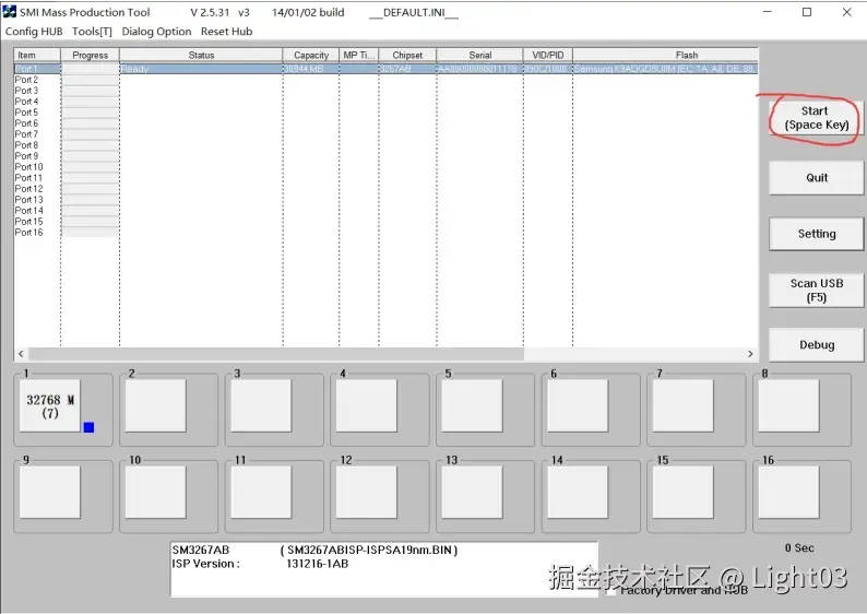 5、按“Start(Space Key)”按钮开始量产