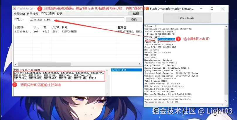 ①在Flash Drive Information Extractor软件复制“Flash ID”(闪存ID)的信息