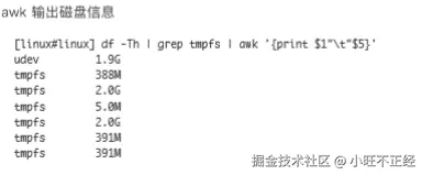 AWVK 语言的基本功能是在文件或者字符串中基于指定规则浏览和抽取信息。awk 抽取信息后,才能对其他文本操作。它是一个强大的文本分析工具。简单来说 awk 就是把文件逐行的读入,以空格为默认分隔符将每行切片,切开的部分再进行各种分析处理。之所以叫 AWK 是因为其取了三位创始人Alfred Aho,Peter Weinberger,和 Brian Kernighan 的 Family Name 的首字符。
