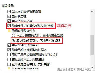 有时文件可能因病毒攻击而被隐藏。您可以打开“文件资源管理器”->“查看”->“选项”->“查看”,勾选“显示隐藏的文件、文件夹和驱动器”,并取消勾选“隐藏受保护的操作系统文件”,然后查看U盘中是否有您的文件。
