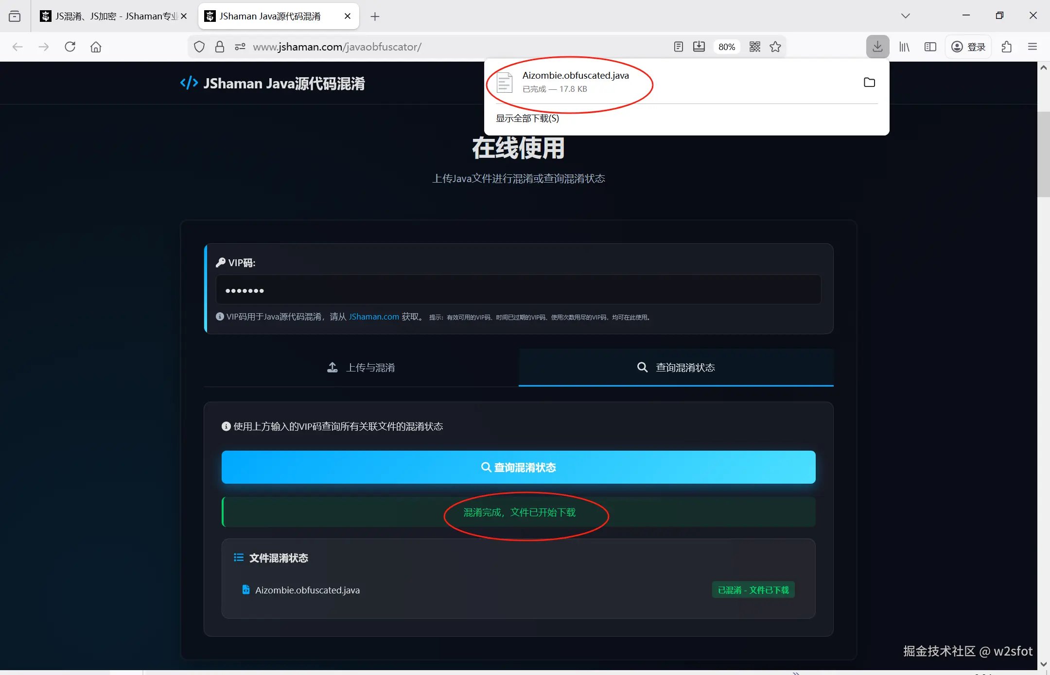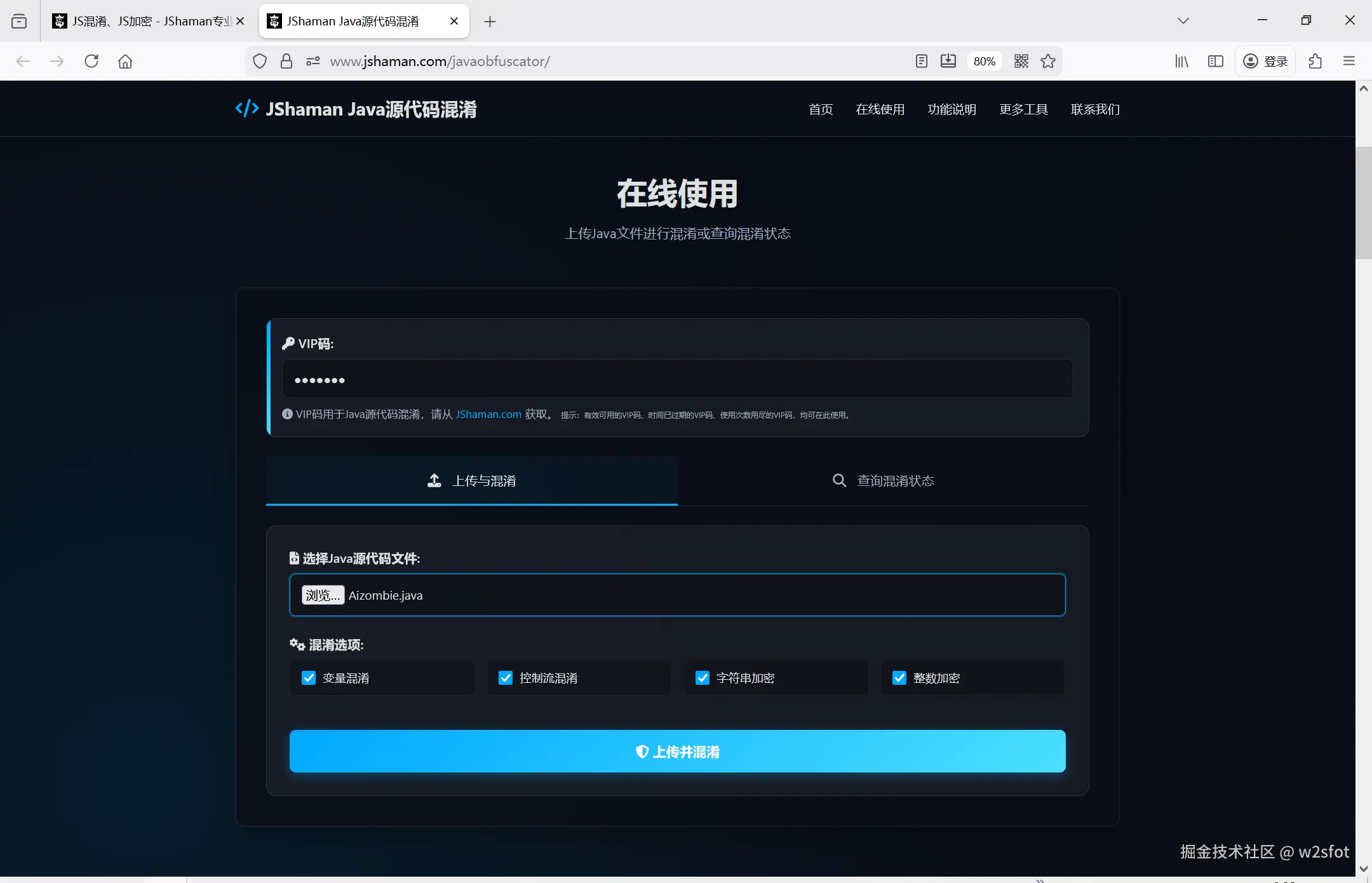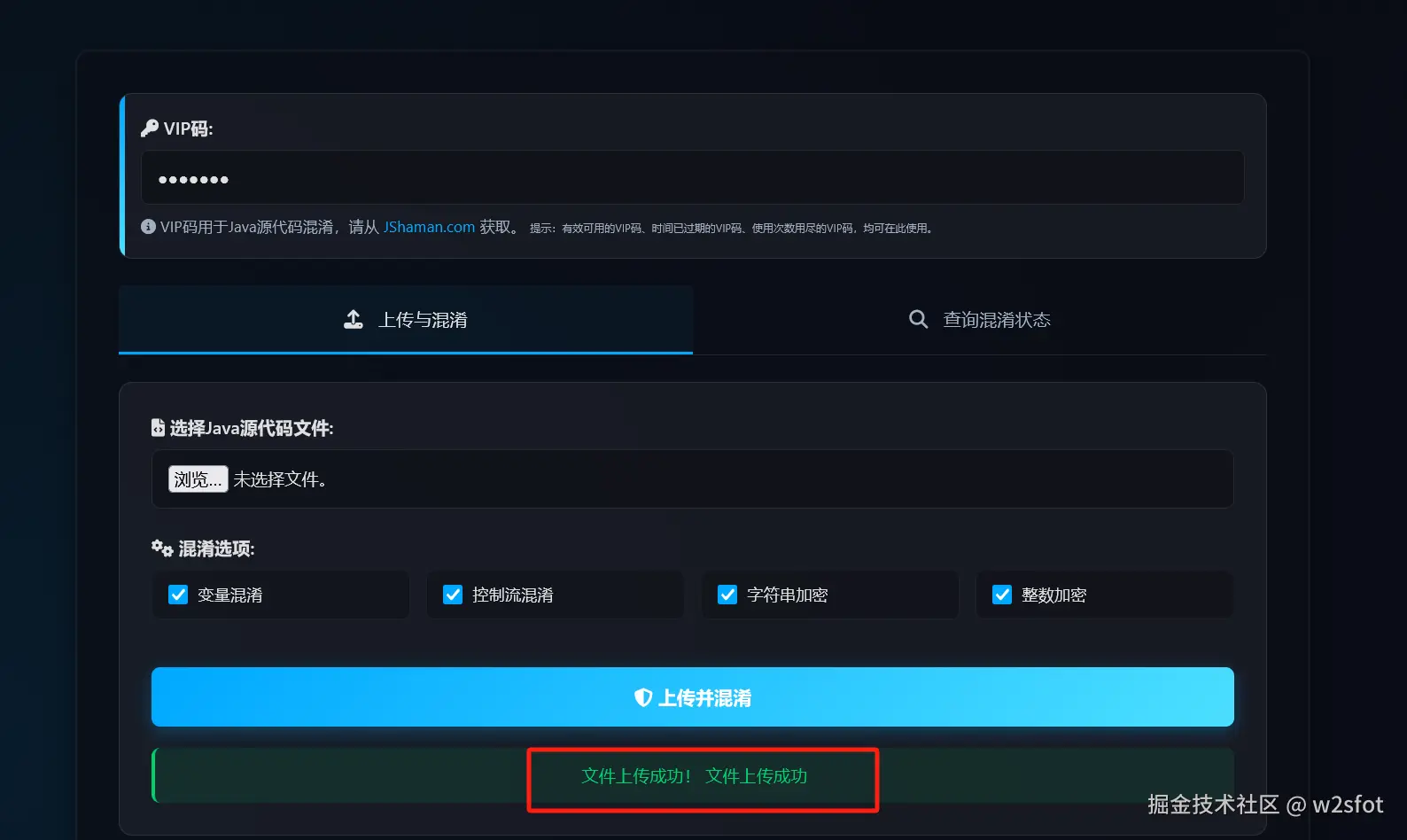 选择了一个Java文件,点“上传并混淆”。提示上传成功: