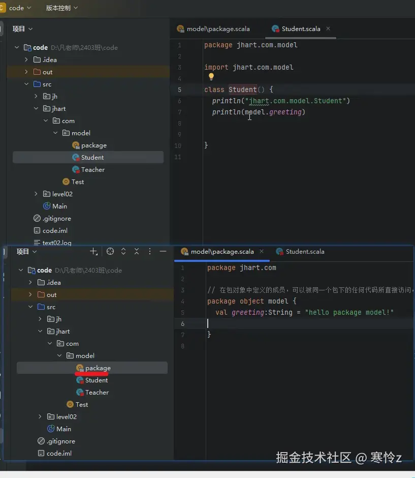 // 在包对象中定义的成员,可以被同一个包下面的任何代码所直接访问,不需要导入
