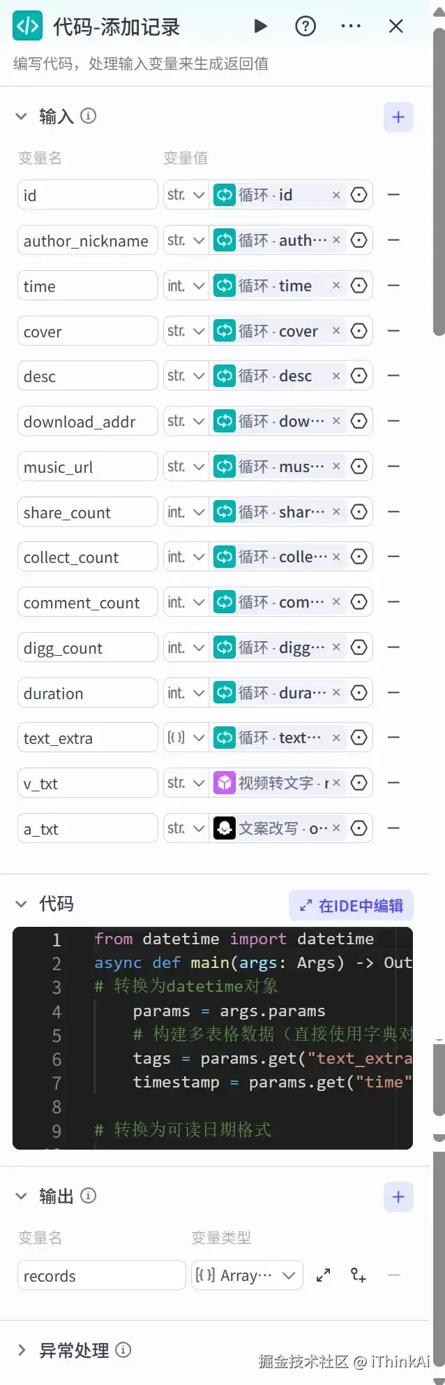 用Coze一键抓取抖音热门视频文案,并自动转换成小红书风格的笔记,实现跨平台创作无缝 衔接,将数据自动录入飞书多维表格,可根据点赞数筛选笔记、去除重复数据等。