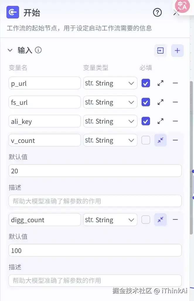 工作流起始点,需将节点参数设为指定样式。