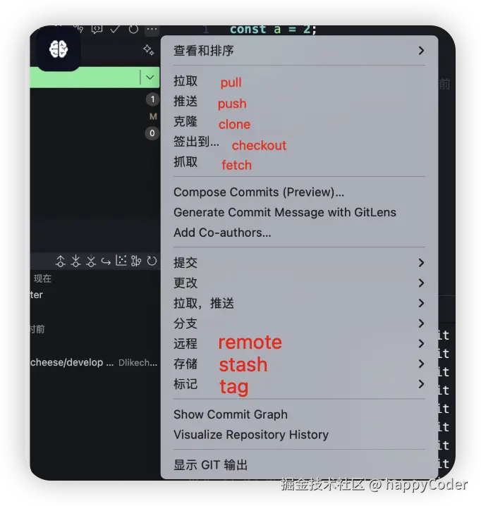 作为一名前端开发者,我们每天都要与代码版本控制打交道。Git虽然功能强大,但手敲命令行较为麻烦。而VS Code提供了强大的内置Git功能和增强插件,让我们能够通过直观的可视化界面完成绝大多数Git操作,在团队协作开发下,提升开发效率。本文主要介绍工作中常见场景下的一些git操作。