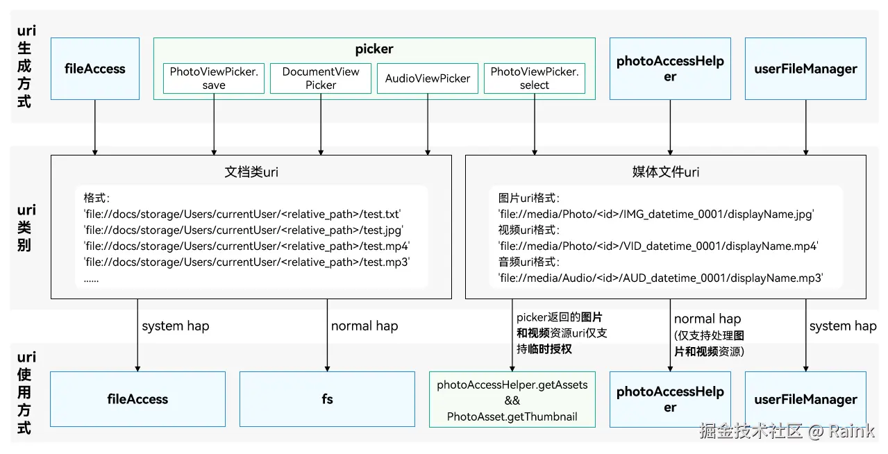 - 选择器 : 选择器(Picker)模块封装了PhotoViewPicker、DocumentViewPicker、AudioViewPicker等API模块,提供文件选择与保存能力。(@ohos.file.picker)