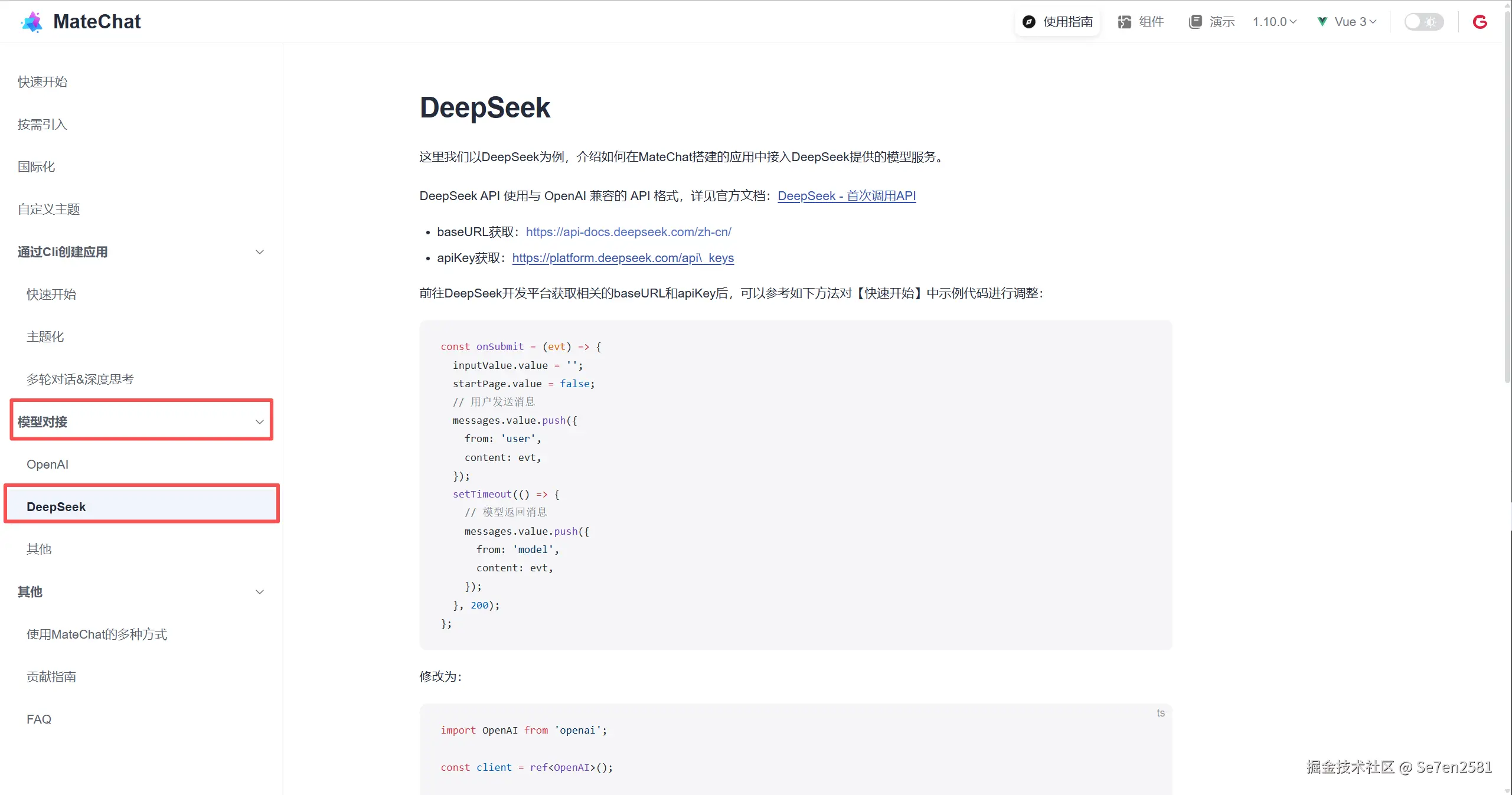 UI 搭好了,现在我们要注入灵魂。我选择用deepseek大模型,这里官方也给了非常详细的对接步骤