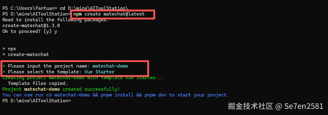 npm create matechat@latest