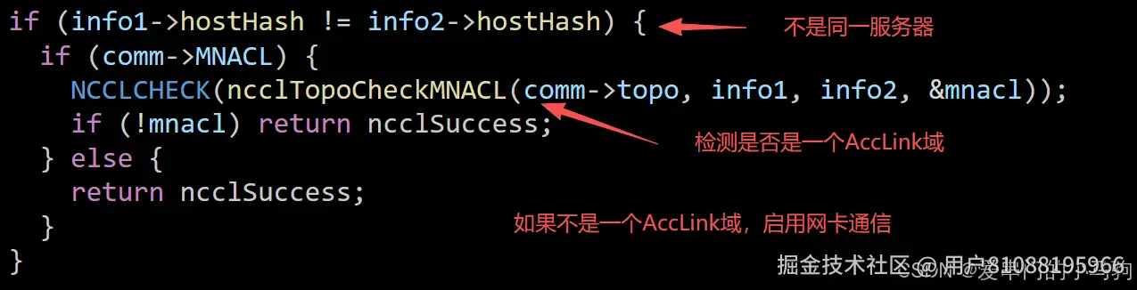 针对第一条,如下图所示,集合通信时,检测两个服务器间能否进行AccLink通信,如果能进行AccLink通信,用AccLink通信,否则才使用网卡进行通信。