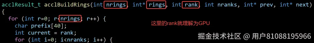 如下图所示,rank就代表GPU,服务器内构建ring环。
