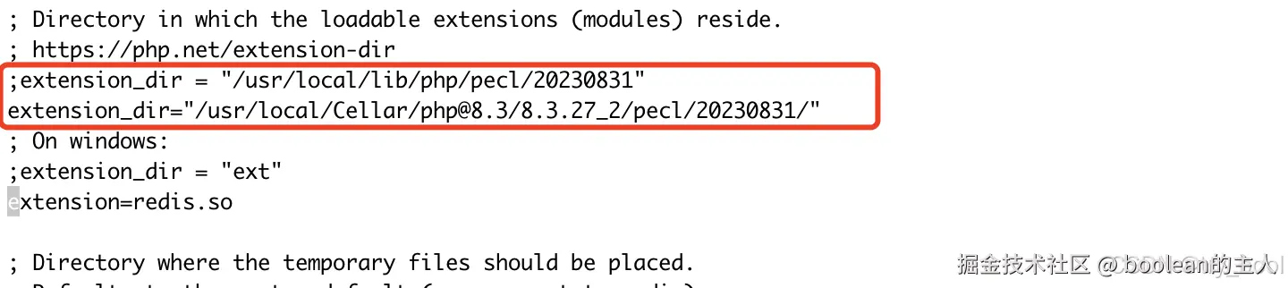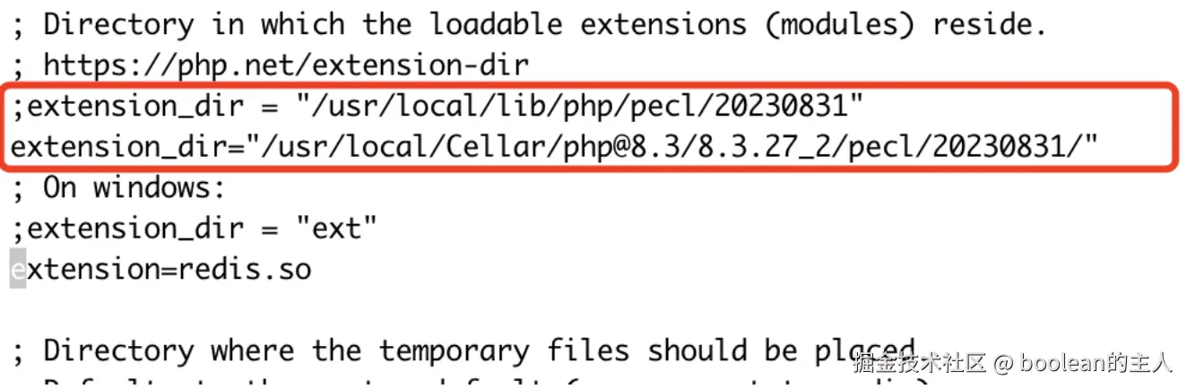 把结果编辑到extension_dir,例如我的一开始目录是不对的,换成了新的才正常