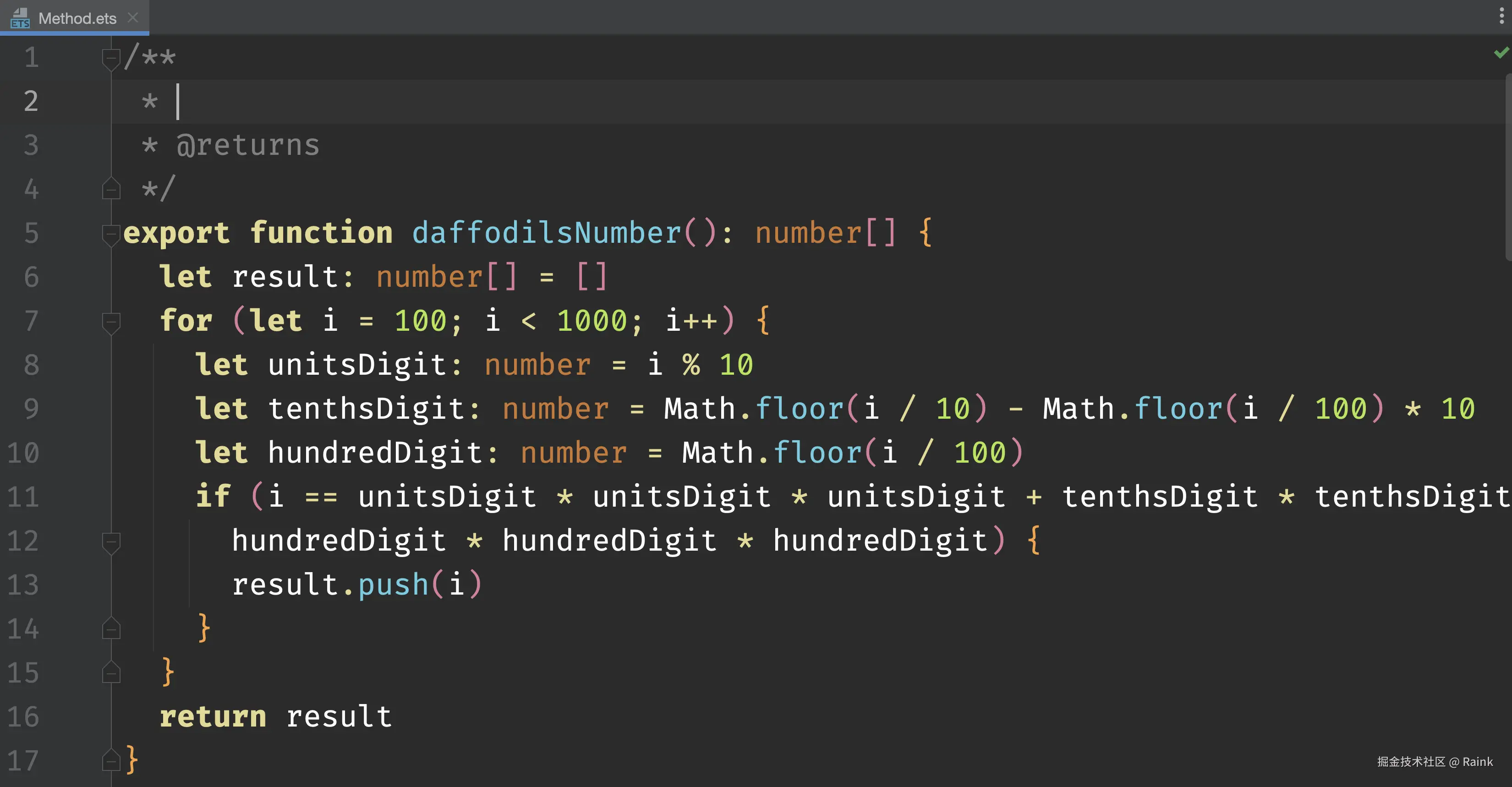 DevEco Studio支持在函数定义处,快速生成对应的注释。在函数定义的代码块前,输入 “/”+回车键**,快速生成注释信息。如图14所示。