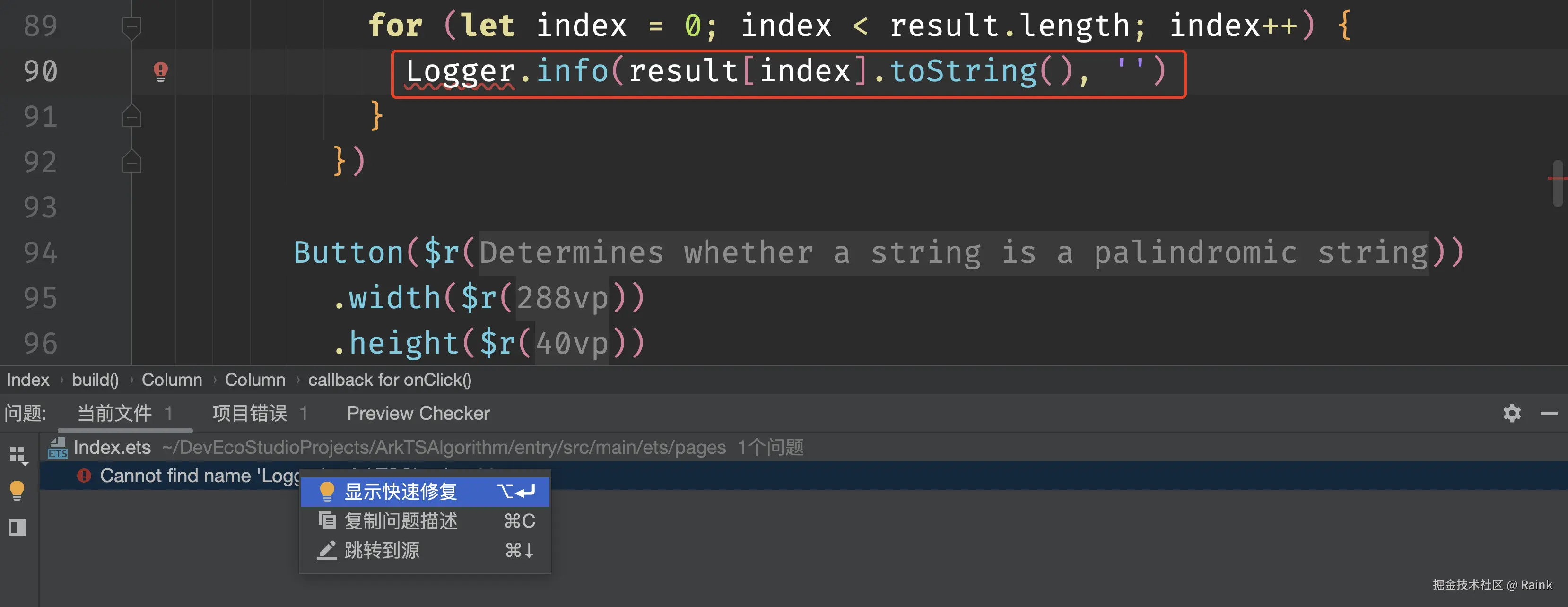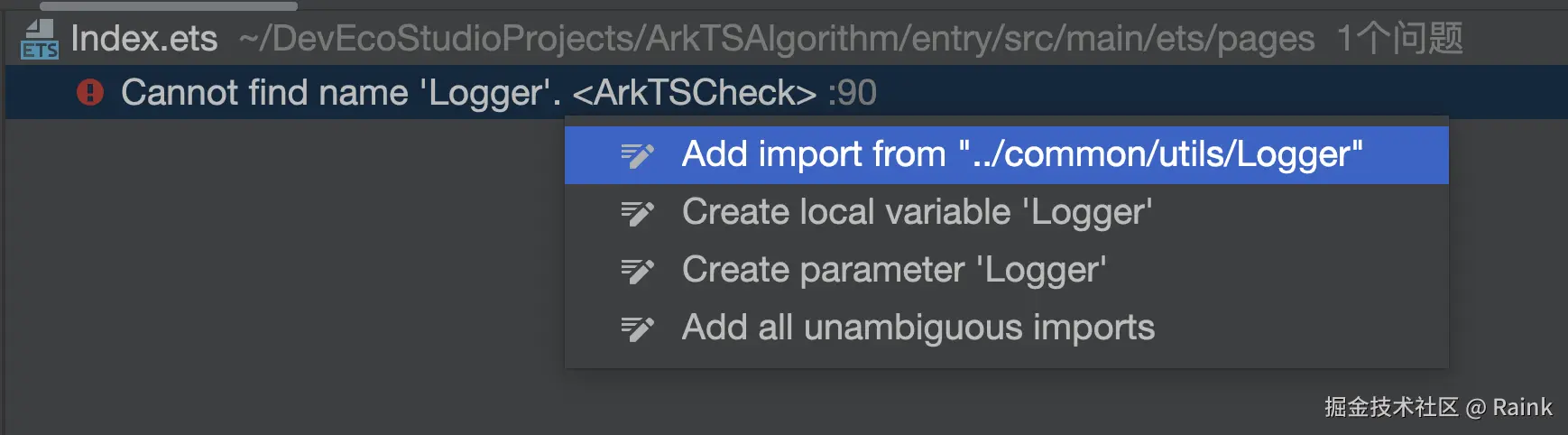 DevEco Studio支持代码快速修复能力,辅助开发者快速修复ArkTS代码问题。