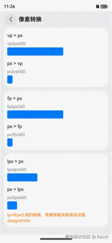 - 展示了像素单位转换相关API的使用。