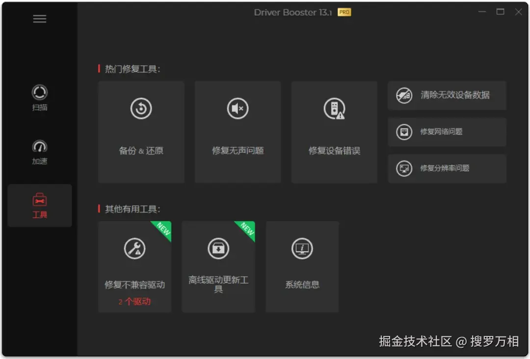 - 设备问题修复:解决因驱动问题引发的常见故障,比如电脑无声音、网络连接异常、蓝屏死机、显示器分辨率异常等,通过驱动更新和工具内的修复功能基本就能解决。