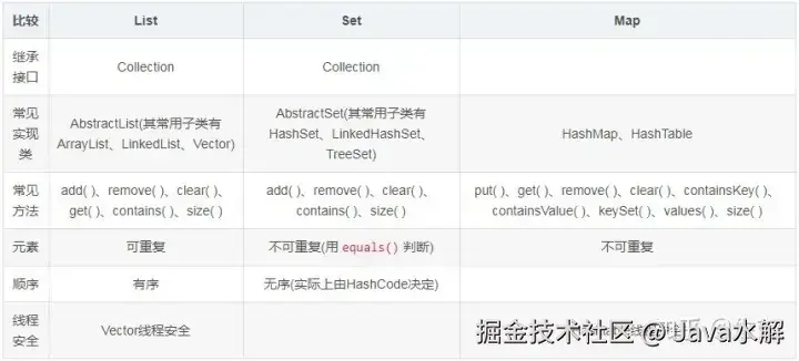 20. List、Set、Map 之间的区别是什么?