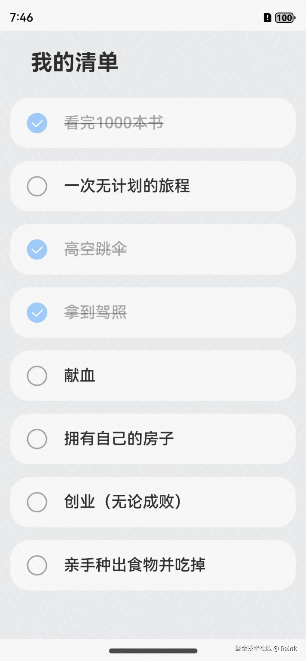 本篇案例介绍如何使用ArkTS声明式语法和基础组件,实现简易待办列表。效果为点击某一事项,替换标签图片、虚化文字。