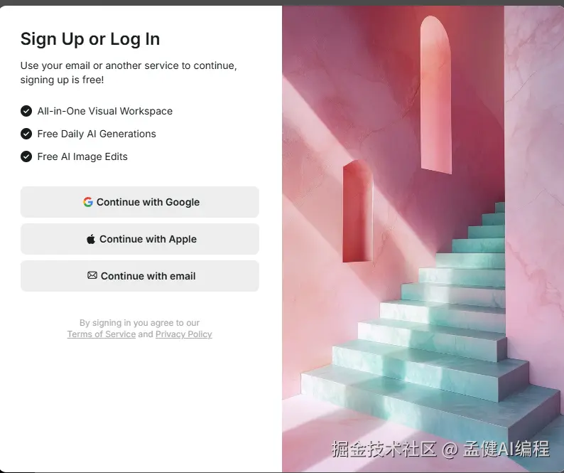 在首页的首屏是一个文生图的 toolbox,要登录后才能使用,首页有很明显拉注册率的提示: