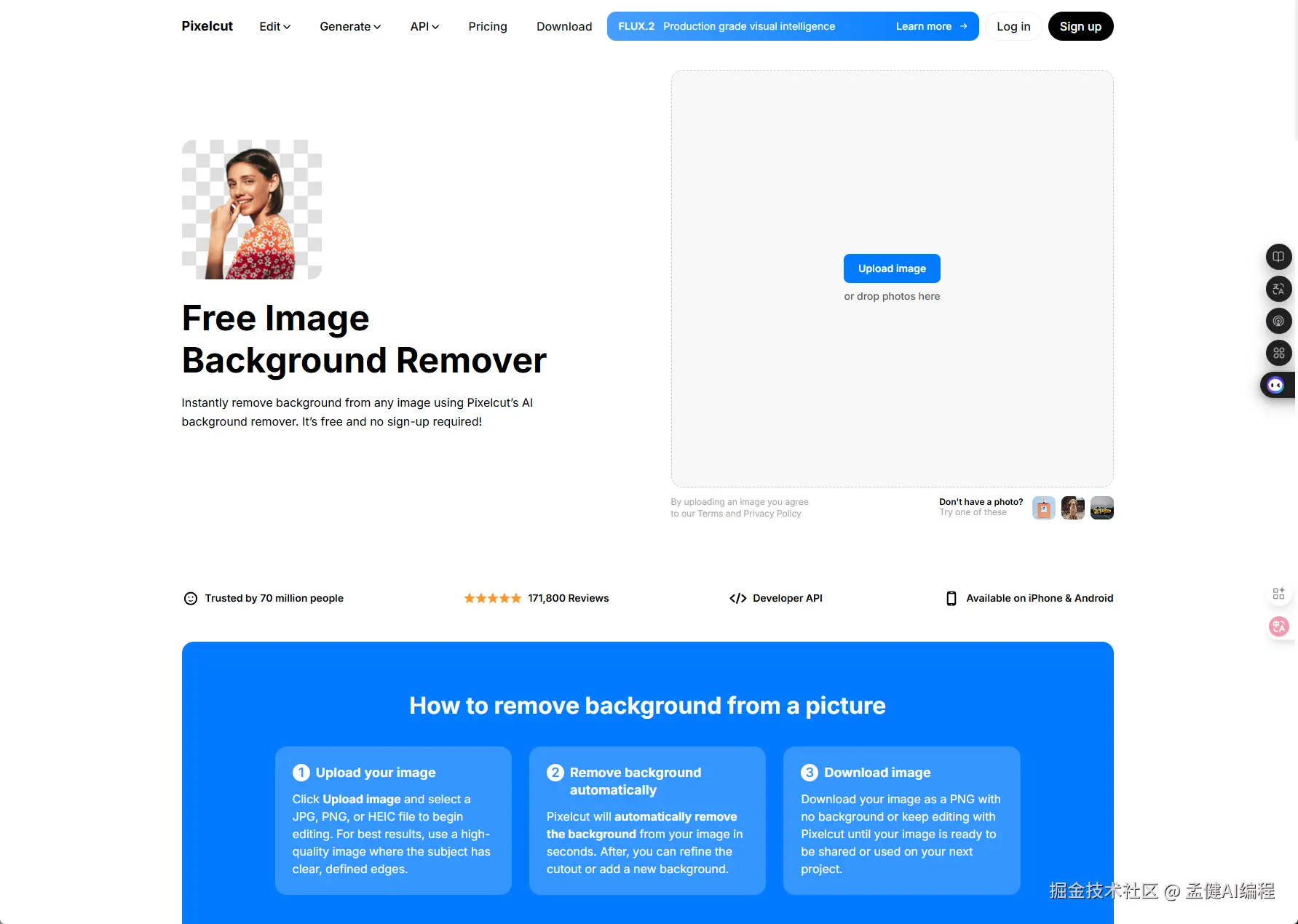 以 background remover 为例,它的内页是一个非常典型的工具页布局,这个非常值得我们学习: