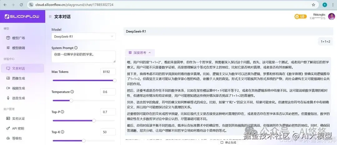 不过需要充值,有些麻烦,我们可以使用国内的硅基流动的playground来体验一下。