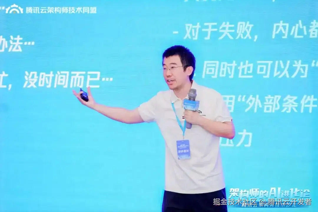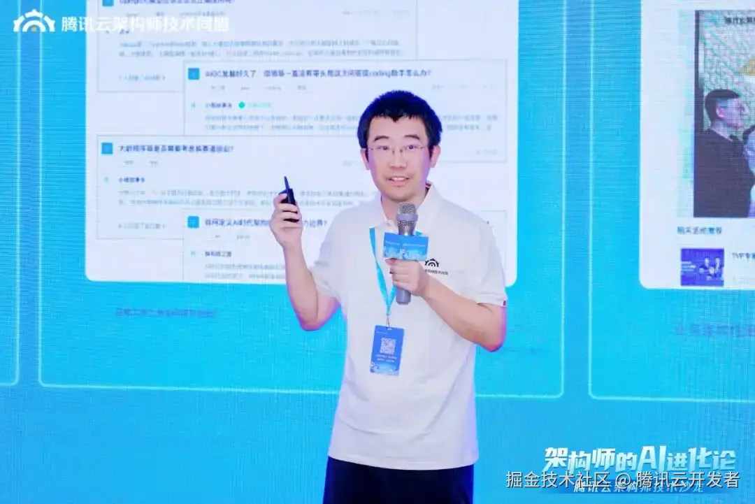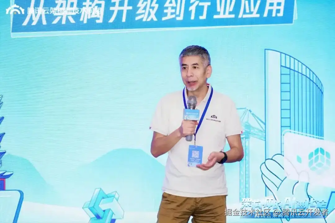 腾讯云架构师技术同盟学习交流主席 沈剑带来《超越焦虑,重塑AI时代架构师的核心竞争力》的主题演讲。