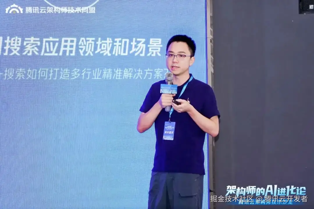 腾讯云搜索业务架构师 毕志深分享《AI 时代下搜索行业应用探索方案》的主题演讲。