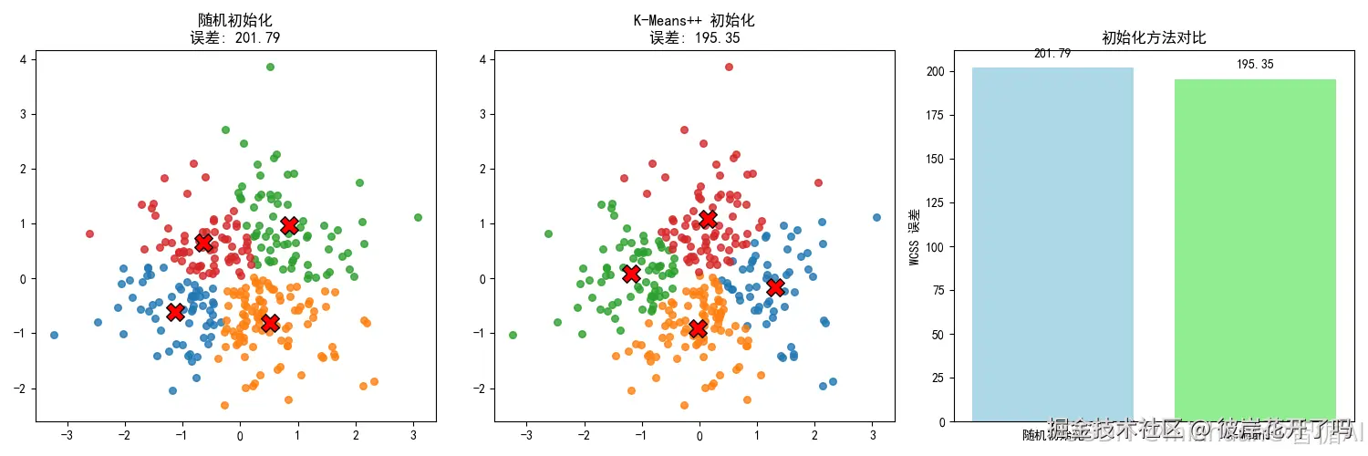 - **随机初始化的影响:**如果我们最开始随机抓的代表是苹果、橙子、香蕉,这三个都是水果,那开局就全乱了,最终结果可能很糟糕。这就是为什么需要 K-Means++ 这种更聪明的初始化方法。