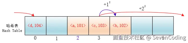 di=12,-12,22,-22,…,k2,-k2;这种方法的特点是:冲突发生时,在表的左右进行跳跃式探测,比较灵活。虽然平方探测法解决了线性探测法的一次聚集,但是它也有一个小问题,就是关键字key散列到同一位置后探测时的路径是一样的。这样对于许多落在同一位置的关键字而言,越是后面插入的元素,探测的时间就越长。
